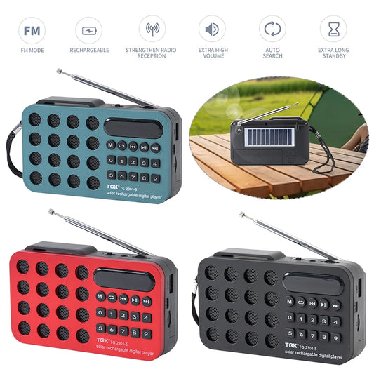 Digital Radio Speaker Music Player Bluetooth-Compatible Solar Charging/Rechargeable Battery Operated MP3 Player Built-In Speaker